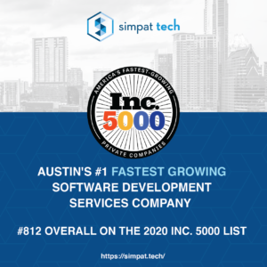 Simpat Tech Recognized as Austin’s Fastest Growing Software Development Services Company on the 2020 Inc. 5000 List Read More » August 13, 2020